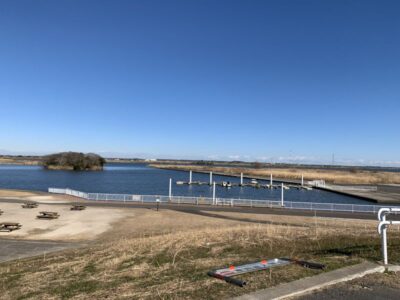 最初に訪れたのは【道の駅水の郷さわら】です。こちらは周りが川になっていて、冬の空と広がる川がとてもすがすがしい気分にしてくれました。